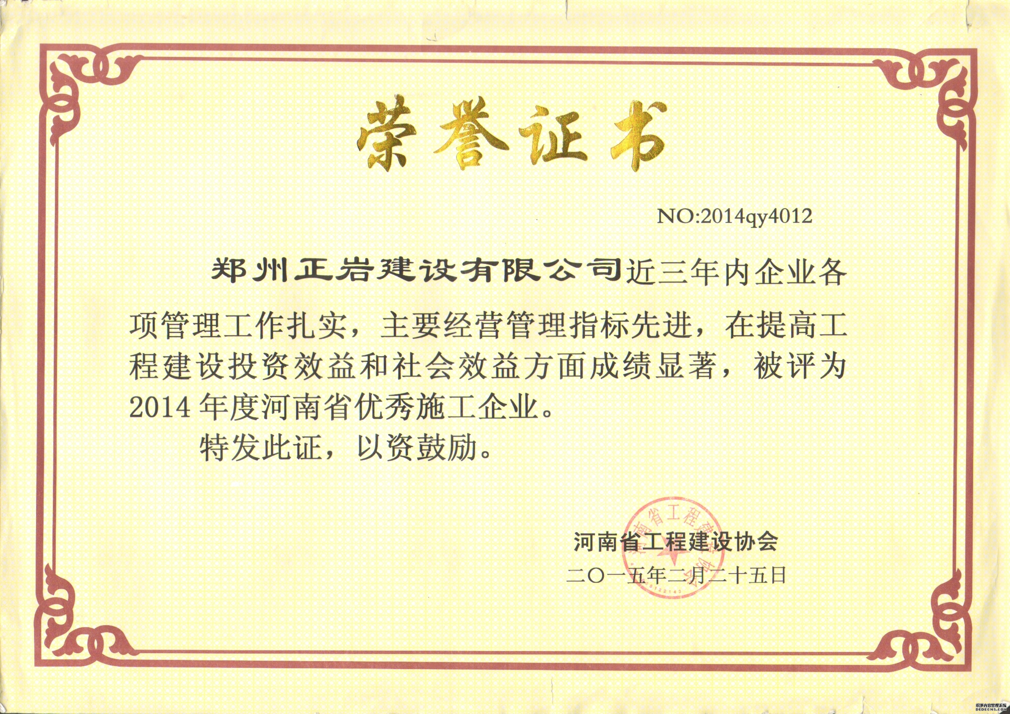 2014年度省優(yōu)秀施工企業(yè)
