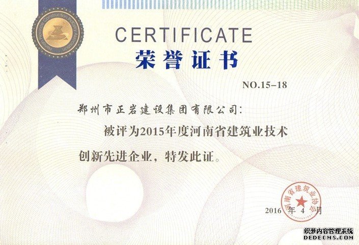 2015年度河南省建筑業(yè)技術創(chuàng)新先進企業(yè)