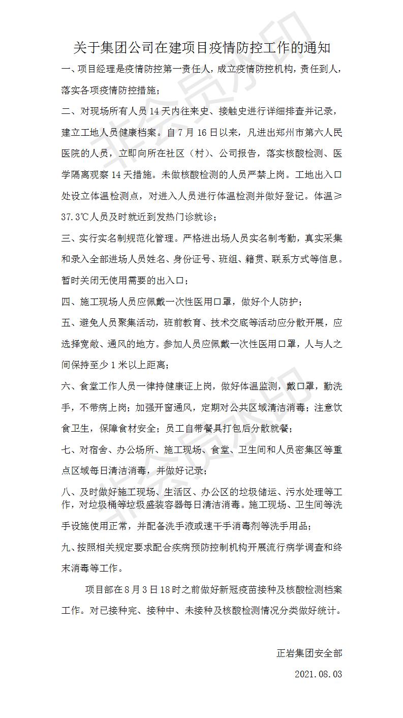 關(guān)于集團(tuán)公司在建項(xiàng)目疫情防控工作的通知